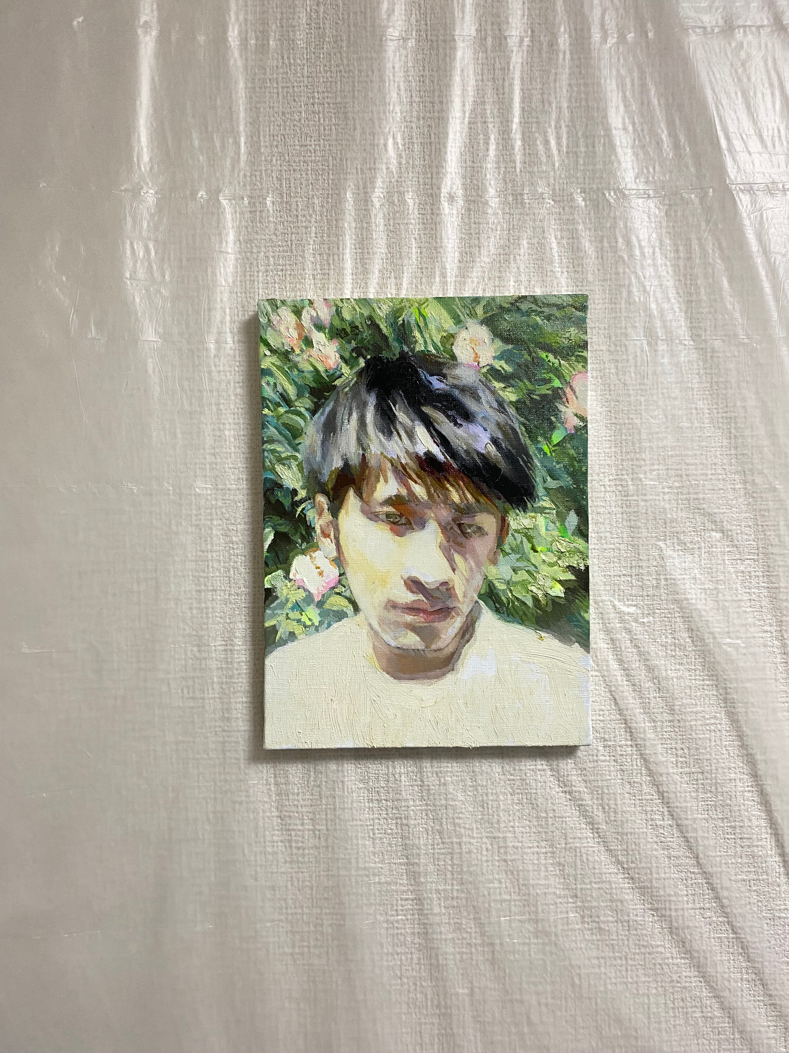 2022年5月頃に描かれた作品。「春の陽に照らされたイケメンな自分を描きたい」という動機で描いた。同年7月に開催された初個展「贔屓する日光」に出展された。
