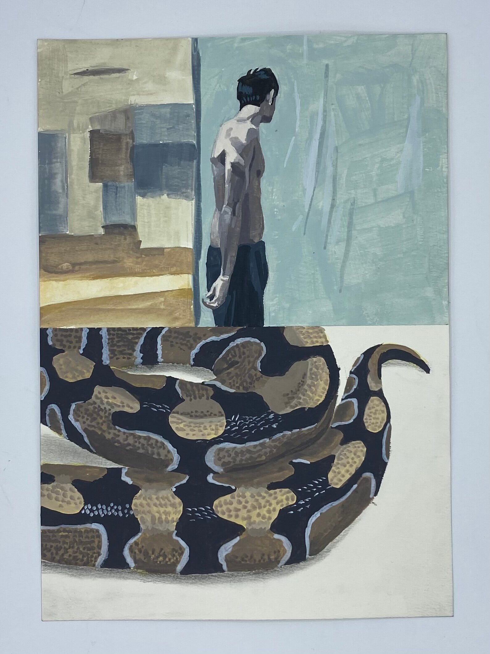 紙にアクリル、色鉛筆