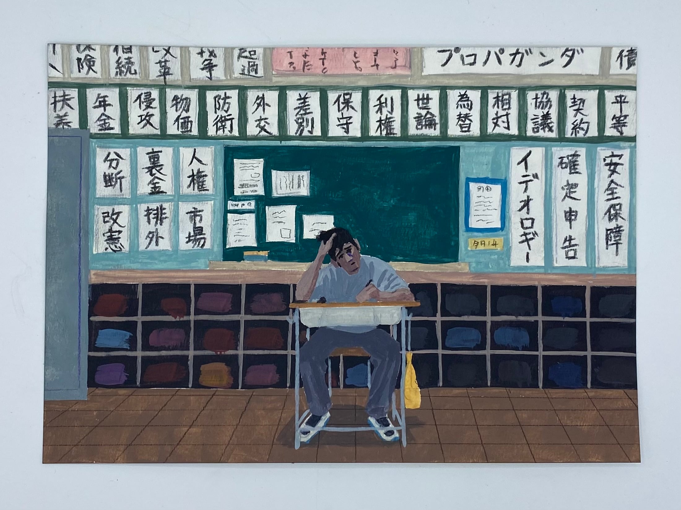 紙にアクリル、色鉛筆