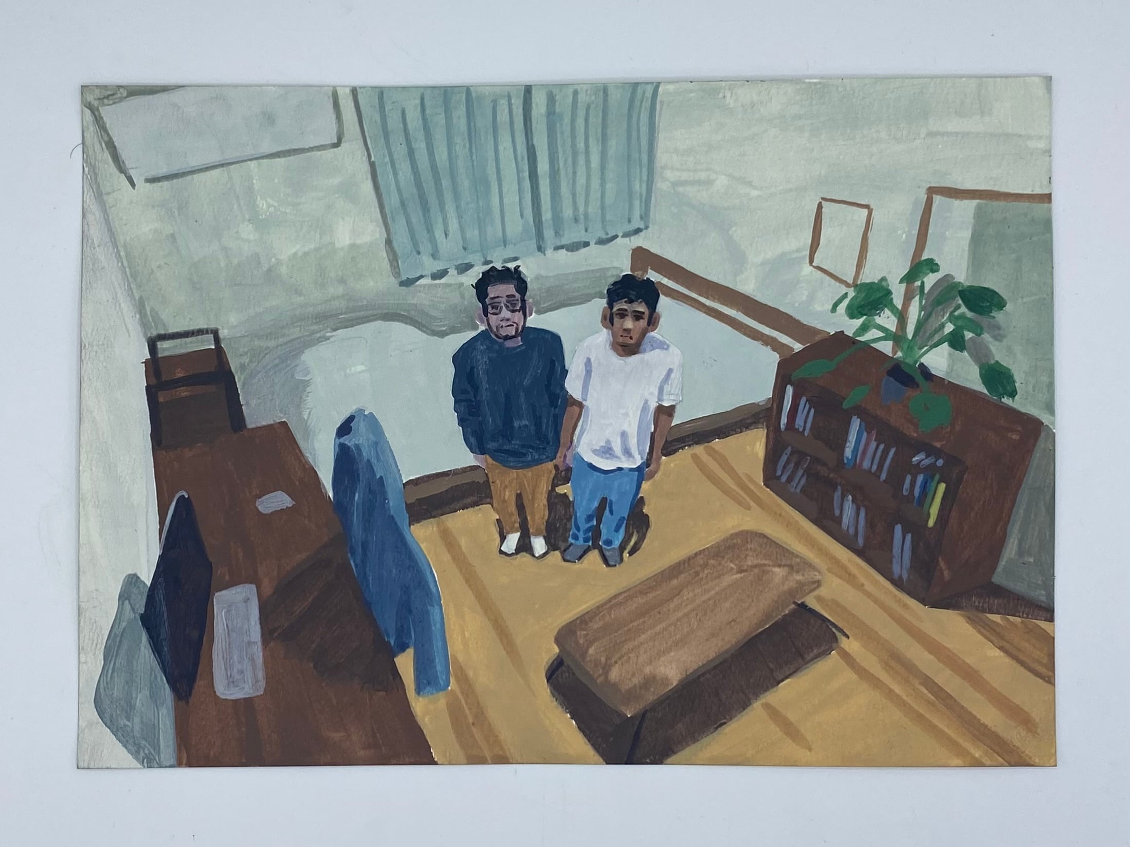 紙にアクリル、色鉛筆