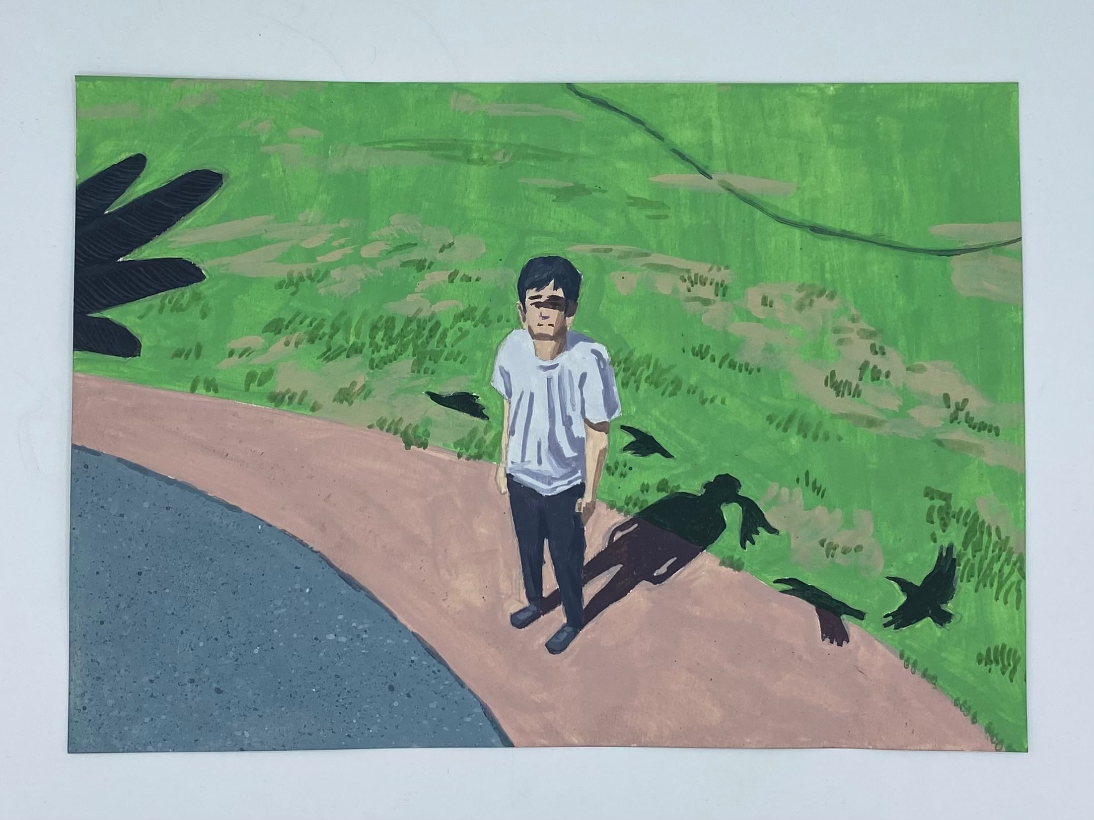 サイズ:A4(210×297) 紙にアクリル、色鉛筆
