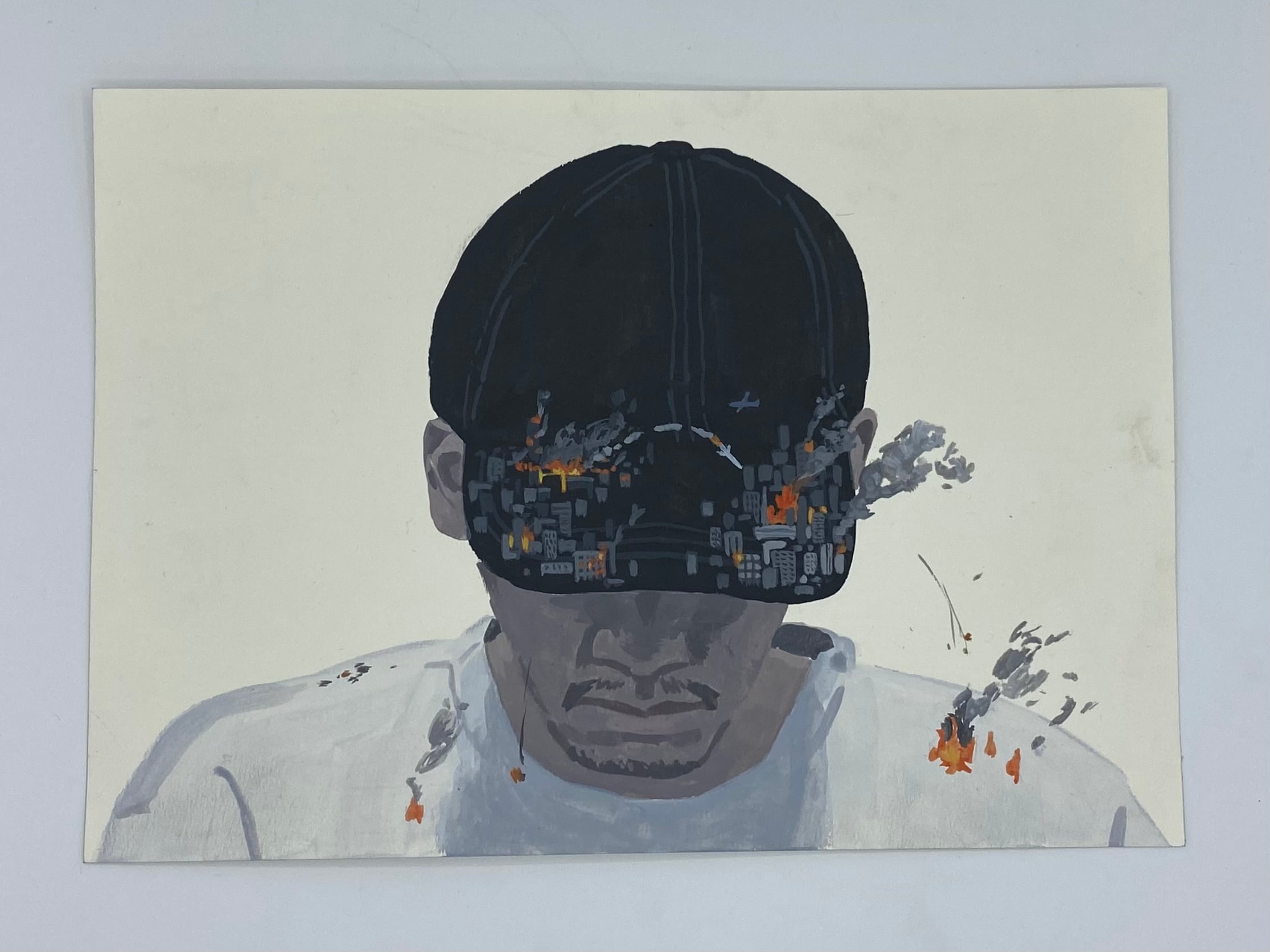紙にアクリル、色鉛筆
