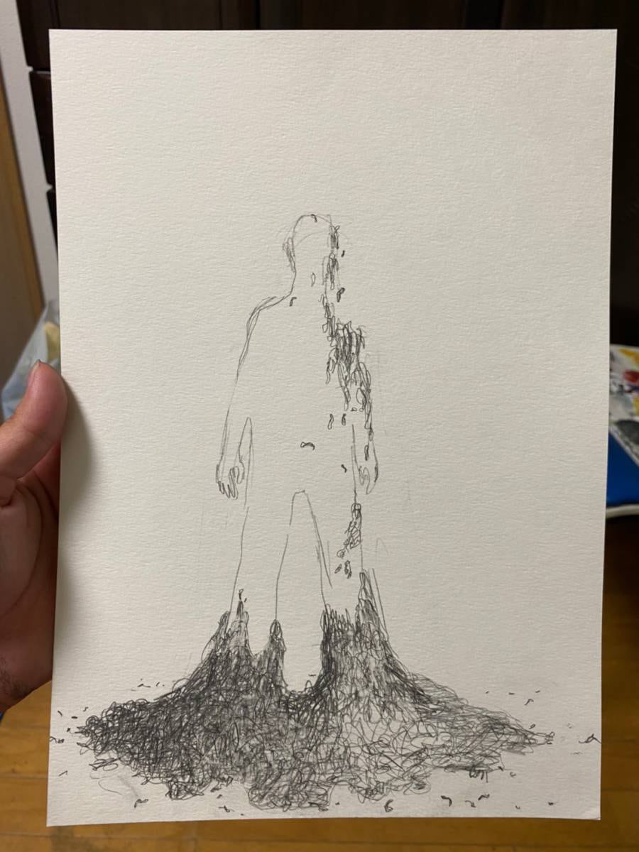 紙に水彩、色鉛筆、鉛筆、ペンなど