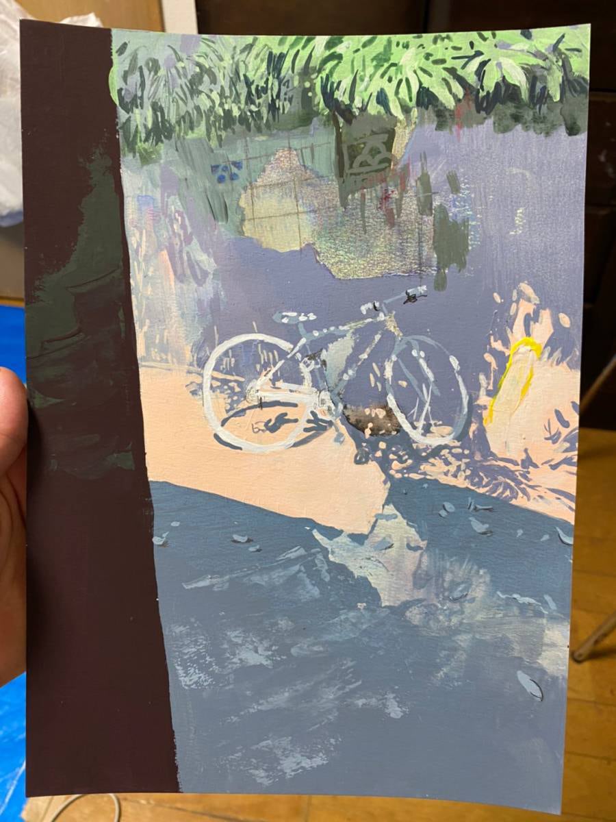 紙に水彩、色鉛筆、鉛筆、ペンなど