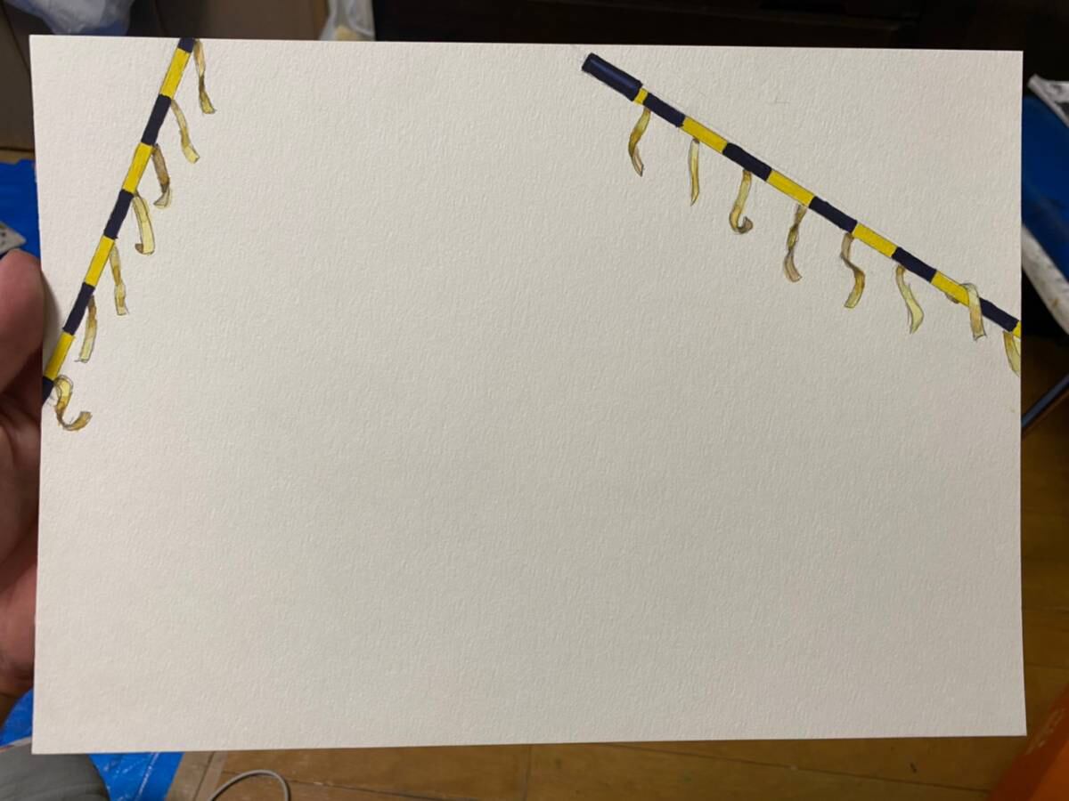 紙に水彩、色鉛筆、鉛筆、ペンなど