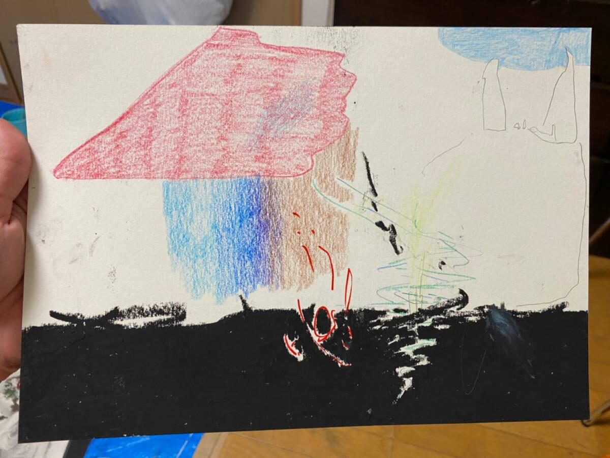 紙に水彩、色鉛筆、鉛筆、ペンなど