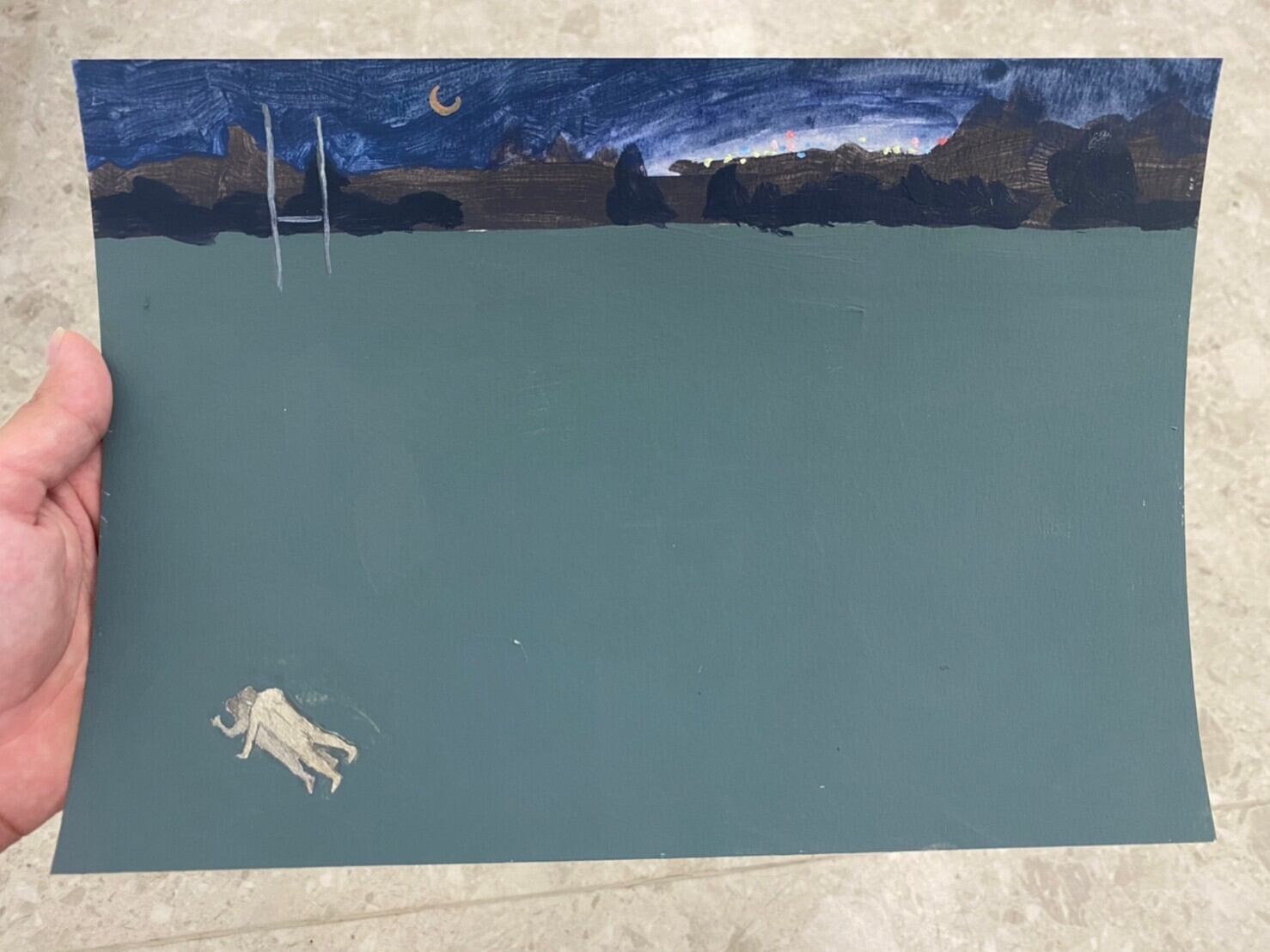 紙に水彩、色鉛筆、鉛筆、ペンなど