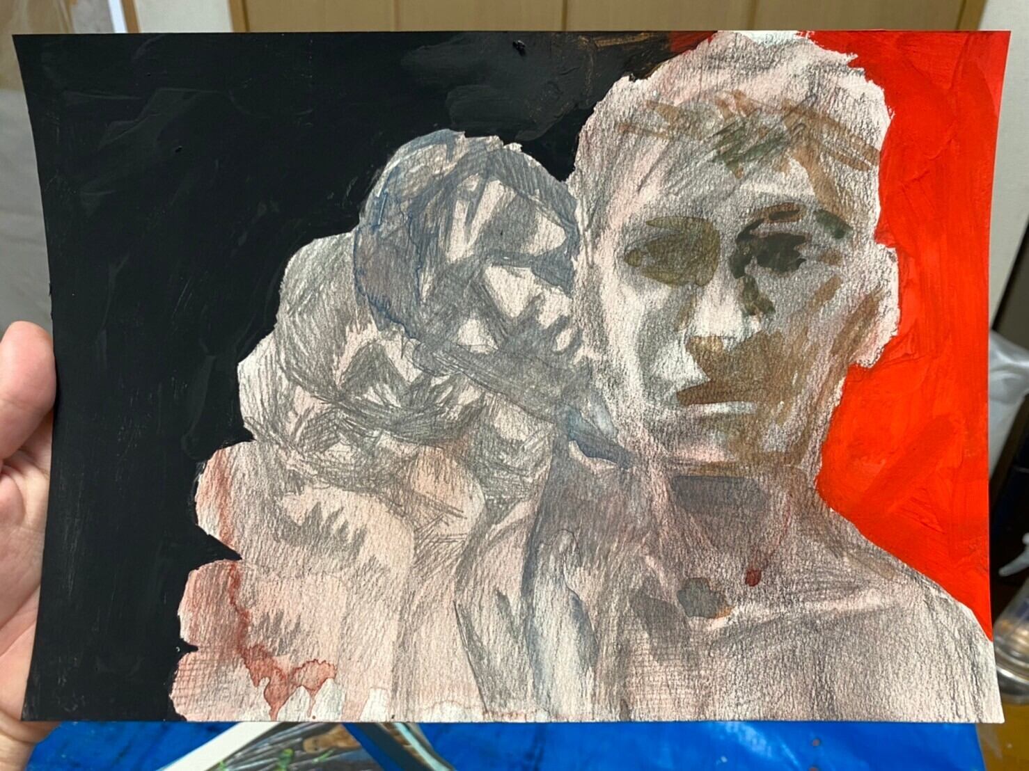 紙に水彩、色鉛筆、鉛筆、ペンなど
