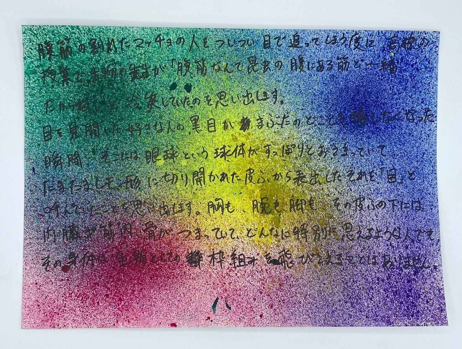 紙に水彩、色鉛筆、鉛筆、ペンなど