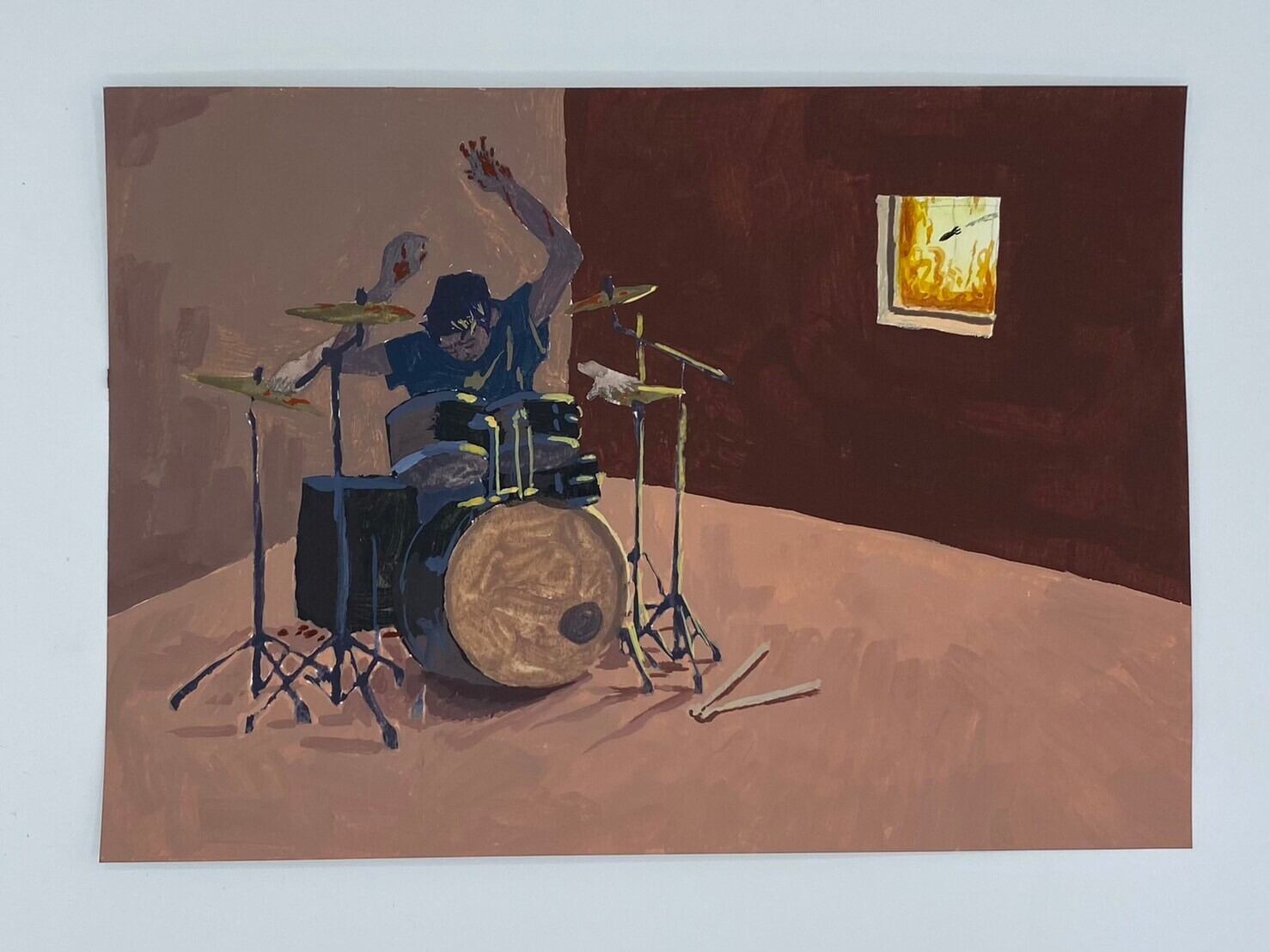 紙に水彩、色鉛筆、鉛筆、ペンなど