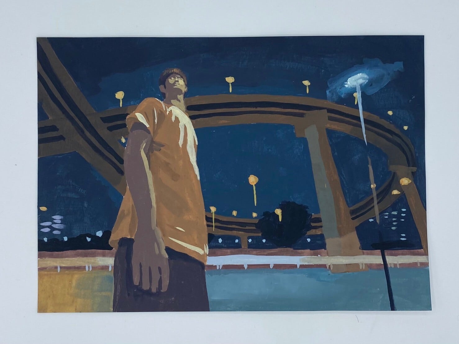 紙に水彩、色鉛筆、鉛筆、ペンなど
