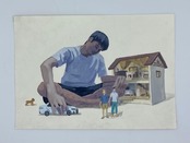 紙に水彩、色鉛筆、鉛筆、ペンなど