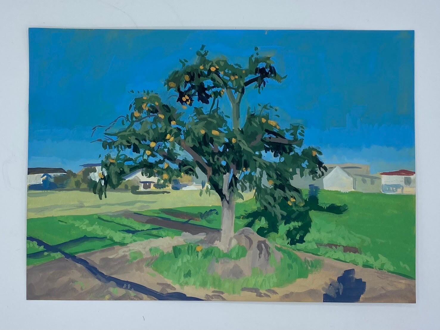 紙に水彩、色鉛筆、鉛筆、ペンなど